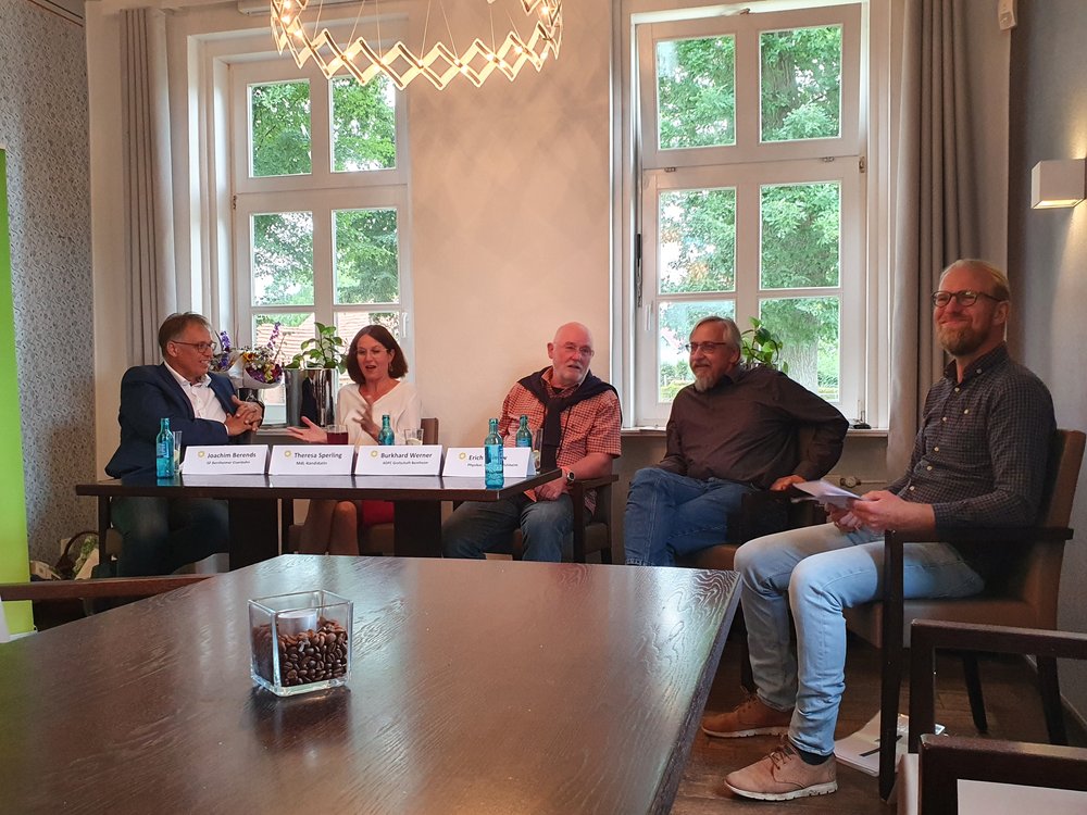Zu diesem Thema lud die Grüne Landtagskandidatin Theresa Sperling am 7.7.2022 in den Hof Veldink in Emlichheim ein. Das gut besuchte Podiumsgespräch mit geladenen Experten wurde von Holger Gosink moderiert.