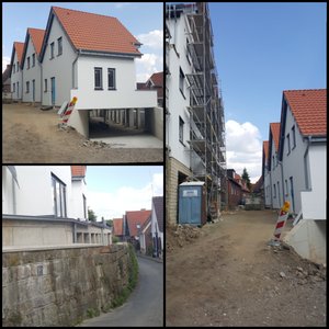 "Wir, die Stadtratsfraktion B90/DIE GRÜNEN, wenden uns heute in der Angelegenheit „Bebauung des Grundstückes Franziskusstraße 1, 48455 Bad Bentheim“ mit konkreten Anfragen und der Bitte um Informationen und ggf. Prüfung, an Sie als aufsichtführende Behörde. 1. Verlauf Wegefläche zwischen den Gebäuden: Entlang der ehemals durchgängigen Franziskusstraße soll gemäß einer Vereinbarung mit dem Investor ein öffentlich zugänglicher Rad- und Fußweg wiederhergestellt werden. Die Zugänge sowohl des Nord- als auch des Südgebäudes liegen an dieser Straße. Die Bauten sind so ausgeführt, dass sich ein deutlicher Höhenunterschied zwischen den Zugängen der beiden Gebäude ergibt, der südliche Zugang ist deutlich höher als der des nördlichen Gebäudes. Eine durchgehende Wegefläche müsste demnach ein Quergefälle aufweisen. Beinhaltet dies die Baugenehmigung? 2. Barrierefreiheit: Um das oben genannte Problem des Quergefälles zu vermeiden, favorisiert die Bad Bentheimer Verwaltung eine Wegefläche auf Niveau der Eingänge und Garagenzufahrten des Nordgebäudes. Dies hat zur Folge, dass die Wegefläche im Vergleich zu den Südgebäuden stark abgesenkt ist und an der Ostseite des Grundstücks ein ca. 70 cm Absatz zur vorhandenen Straße entsteht. Ein Rad- und Fußweg mit 70 cm Absatz oder einer Treppenanlage erscheinen jedoch weder praktisch noch aus Sicht der Barrierefreiheit zulässig. Weiterhin sind in dieser geplanten Version die Zugänge zum Südgebäude und die darin befindlichen barrierefreien Wohnungen nicht mehr barrierefrei zugängig. Abgesehen davon scheinen in keinem der beiden Gebäude die nach der NBauO vorgeschriebenen Abstellflächen für Fahrräder, E- Mobile, Kinderwagen u. a. vorhanden zu sein. Wie ist die Haltung des Kreises in dieser Frage? Sah die Baugenehmigung vor, dass die Zugänge der Gebäude um ca. 70 cm über Wegeniveau liegen? (Da die entstehenden Mehrkosten für den Wegebau die Stadt übernehmen muss, sind Frage 1 und 2 auch von hoher finanzieller Bedeutung.) 3. Mauer zur Unterstraße: Im Bebauungsplan wurde die Bedeutung der Sandsteinmauern besonders hervorgehoben und die Mauern als solche wurden geschützt. Der westliche Teil der Mauer zur Unterstraße wurde nun mit einem Betondeckel versehen – was sicher nicht dem hervorgehobenen und für die Stadt wichtigen und typischen Erscheinungsbild der Mauern entspricht. Ist dies so zulässig? 4. Herausragende Oberkante Tiefgarage über bestehende Mauer: Ein im Bebauungsplan genanntes Ziel ist der Erhalt des für die Altstadt Bad Bentheims typischen Erscheinungsbildes. Unter dem südlichen Gebäude wurde eine Tiefgarage erlaubt. Zudem wurde formuliert, dass die Oberkante der Tiefgarage nicht mehr als einen Meter über die vorhandene Sandsteinmauer hinausragen darf. Dies ist nun nicht der Fall. Die Oberkante der Tiefgarage ragt auf fast der gesamten Länge entlang der Unterstraße deutlich mehr als einen Meter über die vorhandene Mauer hinaus, an der höchsten Stelle sogar ca. 1,9 m. Dies hat erhebliche Auswirkungen auf das Erscheinungsbild der Straße, aber auch Nachteile für die Anwohner sind zu 1 befürchten (e.g. Lärmbelastung durch Öffnungen). Ist diese Abweichung laut Bebauungsplan und Baugenehmigung zulässig? 5. Wiederanpflanzung entfernter Hecke: Die besondere Bedeutung der Hecken im Plangebiet wurde vom Stadtrat besonders betont und in den Beschluss aufgenommen. Die Hecken sind zu erhalten, gegebenenfalls entfernte Hecken entlang der Grundstücke sind durch Neupflanzungen zu ersetzen. Entlang der Südseite wurde entlang der bereits erwähnten Mauer eine Hecke entfernt. Eine Wiederanpflanzung ist nach unserer Einschätzung nicht mehr möglich, da die gesamte Fläche betoniert ist. Welche Folgen hätte es, wenn die Hecke nicht gepflanzt werden kann? Bereits in den nächsten Tagen und Wochen werden Entscheidungen zu den o.g. Aspekten anstehen. Daher wären wir sehr dankbar, wenn Sie uns zeitnah eine Rückmeldung geben könnten, bzw. ggf. eine Baupause veranlassen, um zunächst die Sachlagen klären zu können."