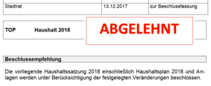 Die GRÜNE Fraktion hat den Haushaltsplan abgelehnt. Die Rede des Fraktionsvorsitzenden Dr. Christian Blum ist hier nachzulesen: