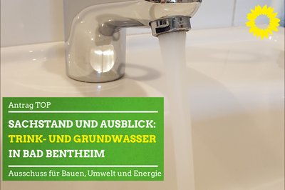 Die GRÜNE Fraktion im Bad Bentheimer Stadtrat beantragt eine Befassung des Ausschusses für Bauen, Umwelt und Energie am 18.11.2019 mit dem Thema Grund- und Trinkwasser - Sachstand und Ausblick.