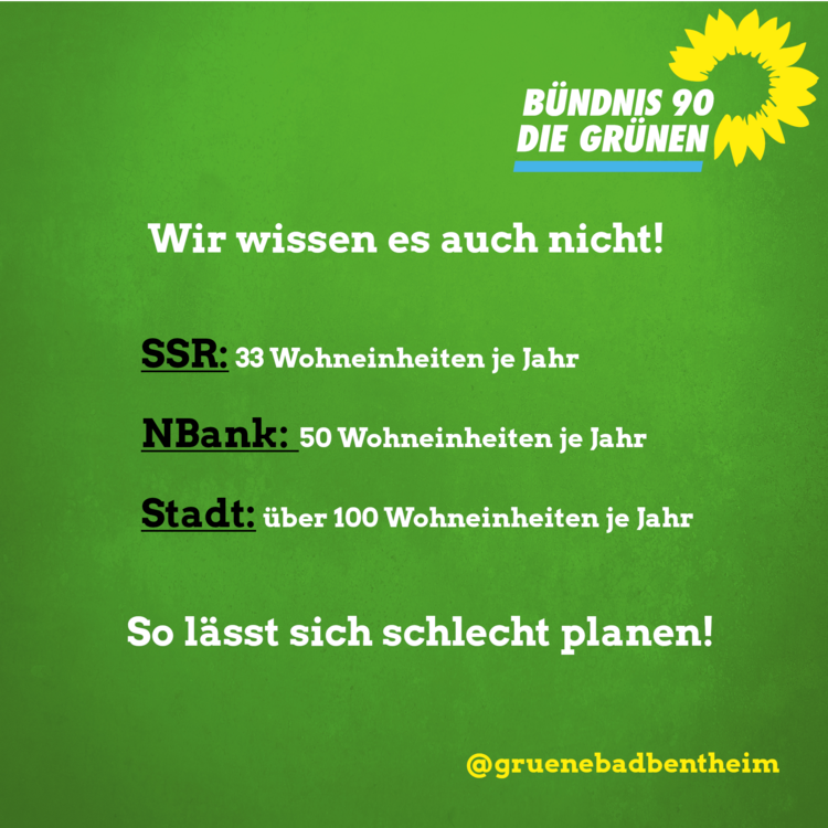 Am 04.11.2020 haben das Büro SSR und die NBank Zahlen, Prognosen und Empfehlungen zur Schaffung von Wohnraum in Bad Bentheim vorgestellt. Bereits in der Sitzung fiel auf, dass NBank und SSR von recht unterschiedlichen Anzahlen an fertiggestellten Wohnungen pro Jahr ausgehen und damit nicht direkt vergleichbar sind. Die dem Rat von der Verwaltung in der Vergangenheit vorgelegten Zahlen sind zudem noch einmal deutlich höher. Der Sachverhalt konnte in der Sitzung nicht geklärt werden, auch steht das Protokoll zur Sitzung noch aus.