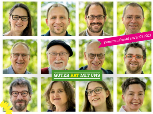 Für die grünen Ideen stehen diese zwölf Kandidatinnen und Kandidaten in dieser Reihenfolge auf der Liste: Dr. Christian Blum (Chemiker), Imke Schröder (Studentin), Magnus Wulf (Geo-Informatiker), Stefan Gerdes (IT-Spezialist), Michael Pruban (Geschäftsführer), Wilma Walmes (integrative Lerntherapeutin, parteilos), Dr. Thomas Füser (Lehrer, parteilos), Dagmar Thiel (freie Journalistin, parteilos), Peter Bogaert (Musiker, parteilos), Detlef Kuhn (Journalist und Diplom-Pädagoge, parteilos), Stefanie Pohl (Lehrerin, parteilos), Dr. Klaus Kaplan (Biologe, parteilos).