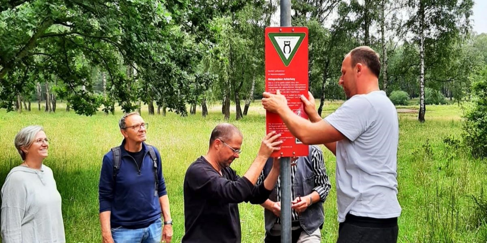 "Wenn die Grünen Probleme erkennen, versuchen sie sie schnellstmöglich zu lösen. So geschehen am vorigen Freitag während einer Fahrradtour, die auch am Achterberger Kleingewässer vorbeiführte. Ein offenbar versehentlich auf dem Kopf anmontiertes Schild der Naturschutzstiftung haben unsere Aktiven in einer spontanen Umbauaktion lesbar gemacht (siehe Fotodokumentation). Natürlich kann man so eine spontane Aktion gut finden. Aber es wird sicher auch wieder Menschen geben, die daraus den Schluss ziehen: “Siehste, ich hab immer geahnt, die Grünen werden alles auf den Kopf stellen, wenn sie erst mal die Mehrheit haben.” Keine Angst, denn die Gefahr besteht in Bad Bentheim nicht… Dann müssten die Grünen die Zahl ihrer Ratsmandate schon verachtfachen! ????"