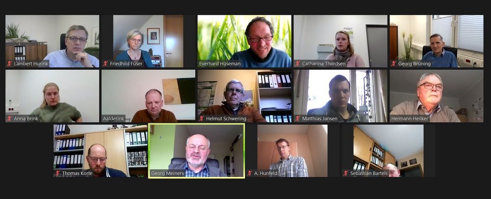 Der Grafschafter Biolandwirt und GRÜNE Bundestagskandidat Everhard Hüseman traf sich am 04.02.2021 in einer knapp zweistündigen Videokonferenz mit 12 Vorstandsmitgliedern und MitarbeiterInnnen der Vereinigung des Emsländischen Landvolkes e.V. (VEL).