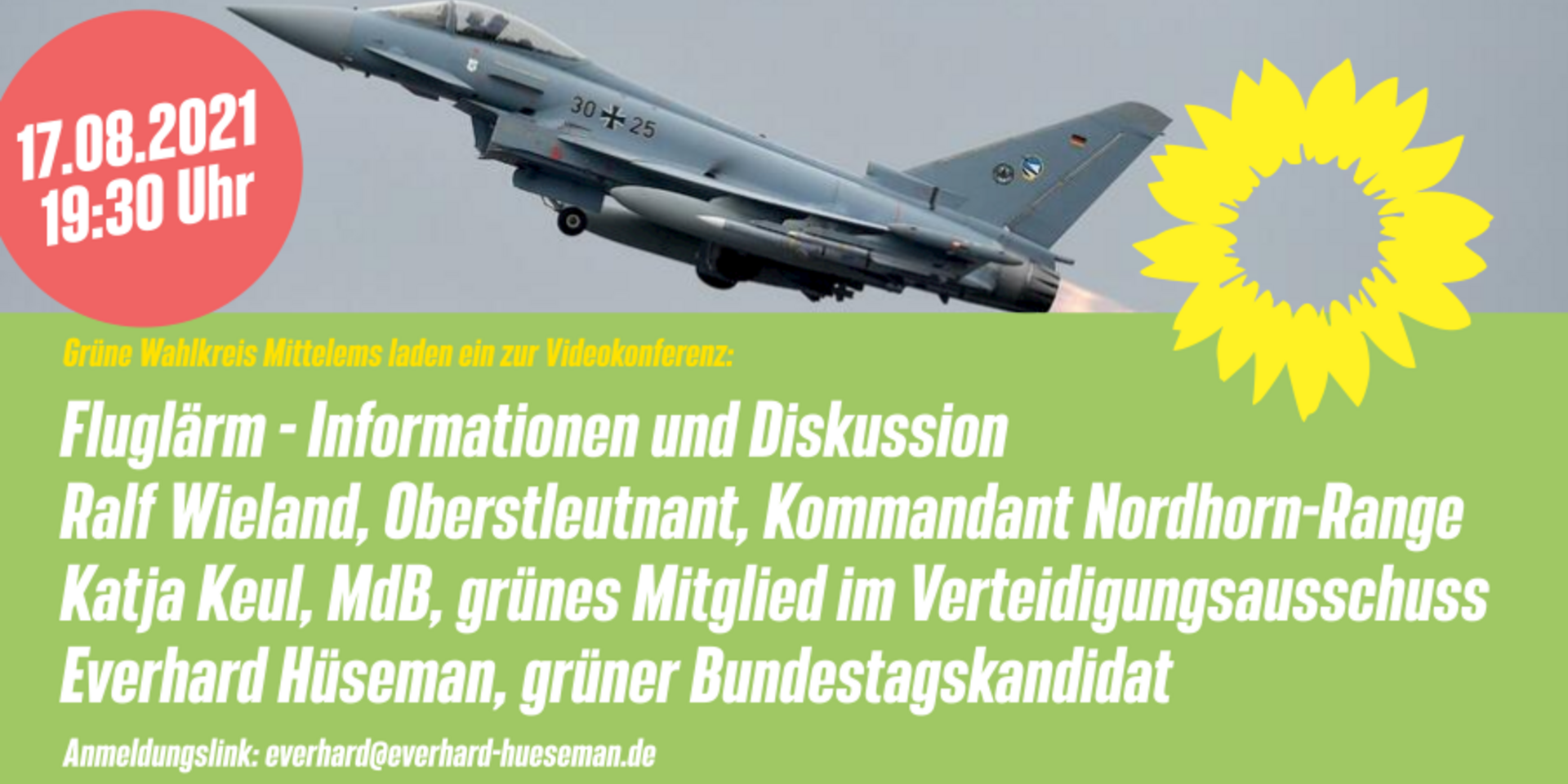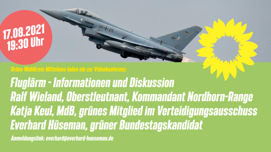 Die GRÜNEN im Wahlkreis Mittelems veranstalten in der Reihe „GRÜN trifft...“ eine Online-Informationsveranstaltung mit anschließender Diskussion zum Thema „Fluglärm über der Grafschaft und dem Emsland – ein brisantes Thema für viele Anwohner:innen“.
