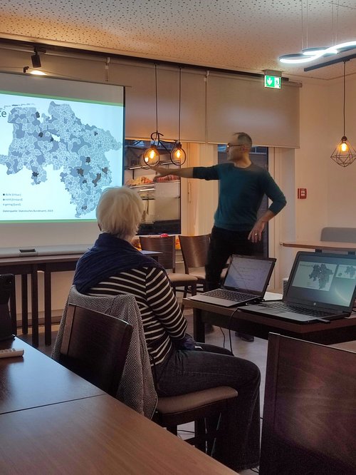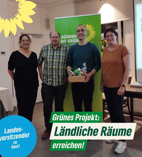 Am Montagabend war unser Landesvorsitzender Dr. Alaa Alhamwi zu Gast bei der Kreismitgliederversammlung. Alaa stellte das Projekt "Ländliche Räume" vor, das der Landesvorstand derzeit entwickelt mit dem Ziel, grüne Themen und grüne Politik auch auf dem Land zu verankern. Keine ganz leichte Aufgabe, denn viele grüne Themen und Lösungsvorschläge orientieren sich mehr an Bewohner:innen der großen Städte.