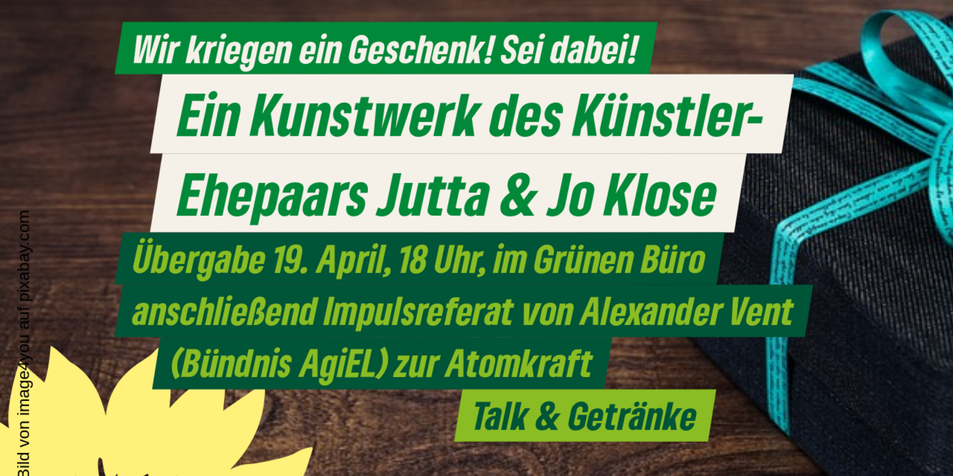 Das Nordhorner Künstlerehepaar Jo und Jutta Klose schenkt unserem Kreisverband ein außergewöhnliches Bild seiner Sammlung zur Eröffnung unseres Büros. Dieses Bild veranschaulicht die Schrecken von Atomwaffen. Die großzügige Schenkung wollen wir in einer kleinen Veranstaltung entgegennehmen: