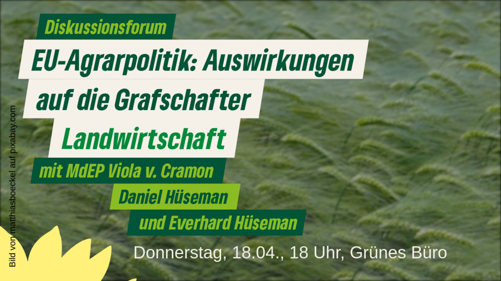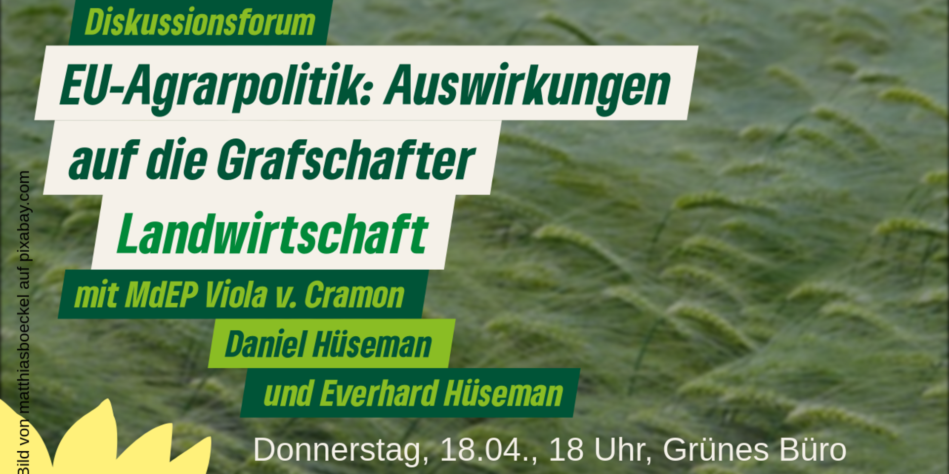 MdEP Viola v. Cramon, Daniel Hüseman (Agraringenieur und Betriebsleiter) und Everhard Hüseman (Biolandwirt und Kreistagsabgeordneter) diskutieren, was von der Gemeinsamen Europäischen Agrarpolitik (GAP) zu erwarten ist - und was nicht.
