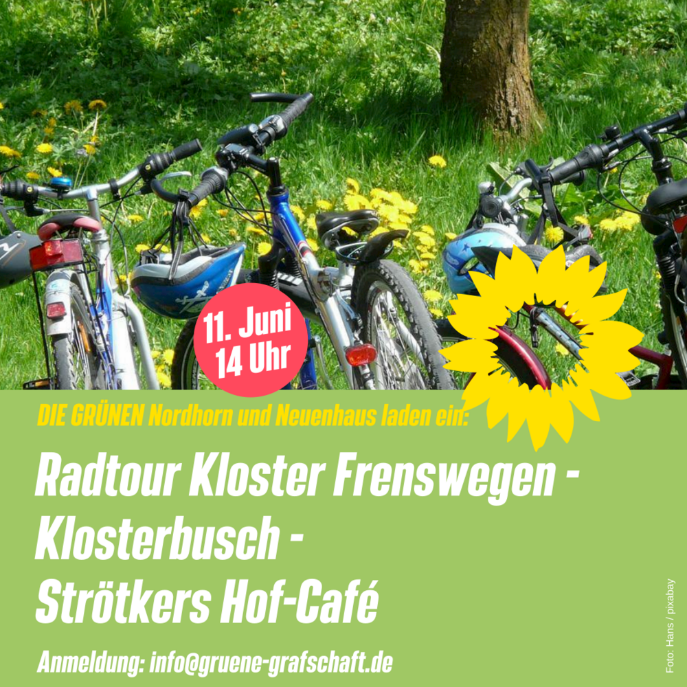 Samstag, 11. Juni, ab aufs Rad! Die GRÜNEN Ortsverbände Nordhorn und Neuenhaus laden Mitglieder und Interessierte ein. Wir besichtigen den Kahlschlag im Klosterbusch und hören, was ein Forstexperte dazu sagt. Mit von der Partie: die GRÜNE Landtagskandidatin Theresa Sperling