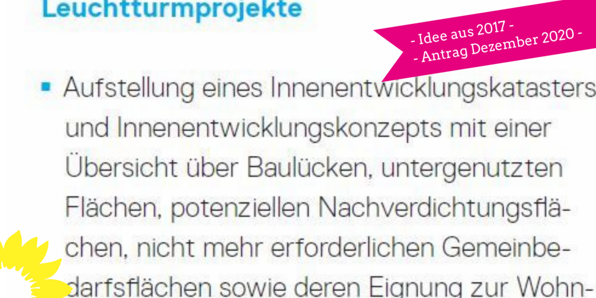„Aufstellung eines Innenentwicklungskatasters und Innenentwicklungskonzepts mit einer Übersicht über Baulücken, untergenutzten Flächen, potenziellen Nachverdichtungsflächen, nicht mehr erforderlichen Gemeinbedarfsflächen sowie deren Eignung zur Wohnnutzung (Zielgruppen), Darstellung von Entwicklungspotenzialen und Hemmnissen”