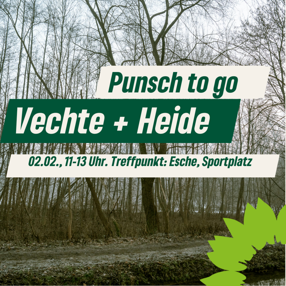 Zum Abschluss gibt's heißen Punsch und was zu knabbern. Anmeldung erbeten: info@gruene-grafschaft.de oder per WhatsApp 05921 39807